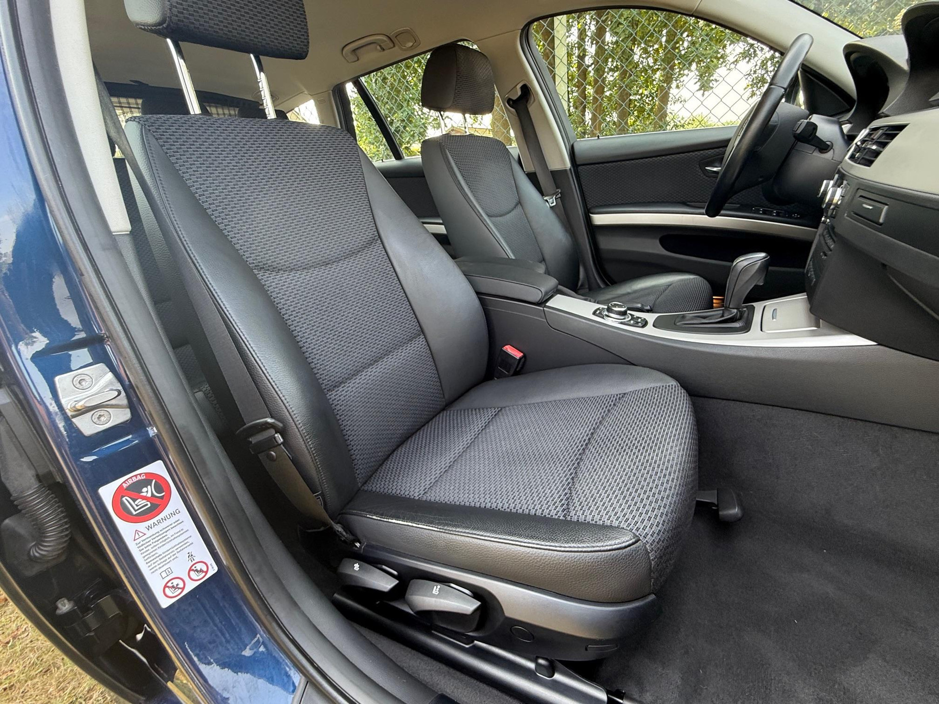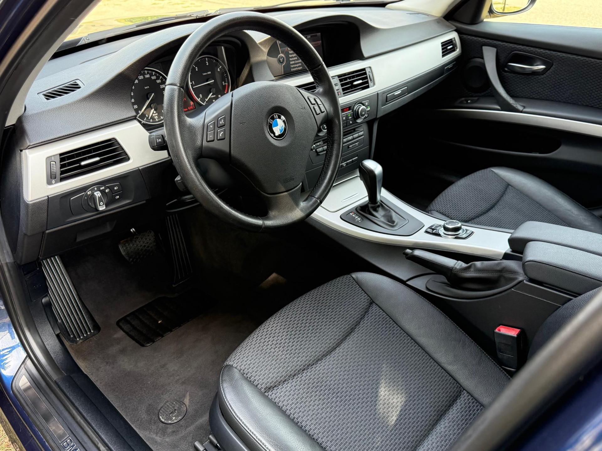 Tiefseeblau Metallic met een 1/2 leder 1/2 stof Impuls antraciet interieur en een mooie uitrusting met onder andere xDrive permanente 4-wielaandrijving, standkachel met afstandsbediening, stoelverwarming, automatische airconditioning, climate comfort voorruit met verwarmbare ruitensproeiers, Key-less go & start systeem, multifunctioneel leren stuur, cruise control, BMW Professional navigatiesysteem met groot kleurenscherm, BMW online services en geïntegreerde Bluetooth telefoonkoppeling, automatisch dimmende binnen- en buitenspiegels, Xenon koplampen met groot-licht assistent en 17 inch lichtmetalen velgen. Deze zijn voorzien van spiksplinternieuwe Premium Hankook run-flat zomerbanden en een stalen velgenset met nog zeer goede winterbanden wordt meegeleverd.
